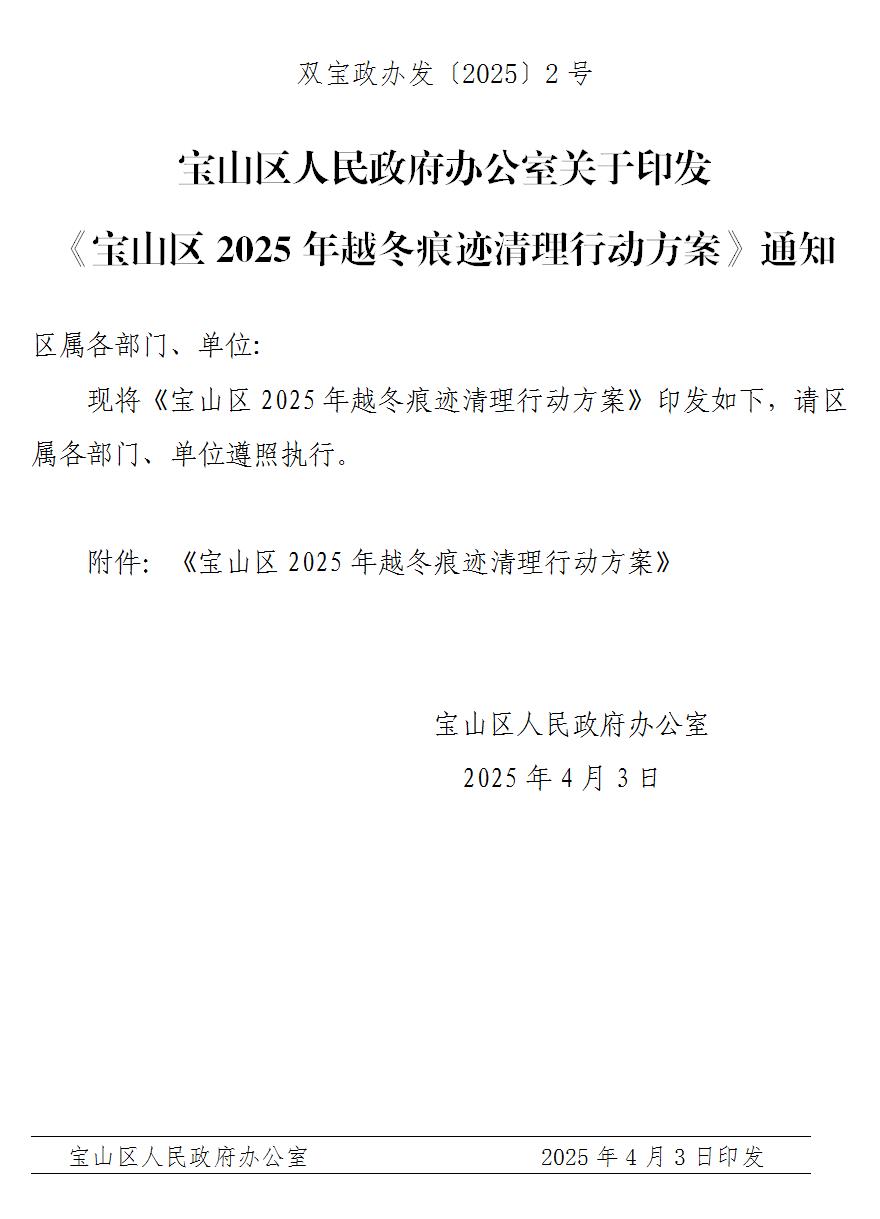 双宝政办发〔2025〕2号 宝山区人民政府办公室关于印发《宝山区2025年越冬痕迹清理行动方案》的通知