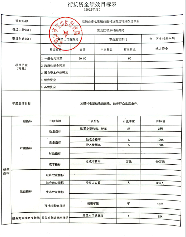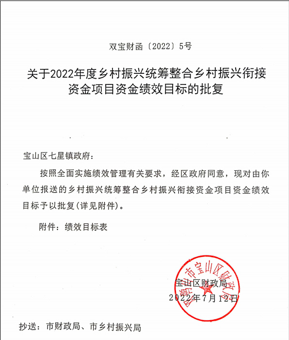 2022年度乡村振兴统筹整合乡村振兴衔接资金项目资金绩效目标的批复