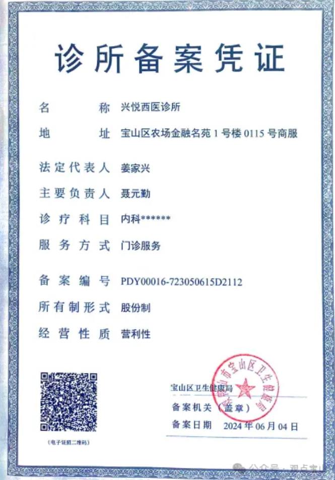 宝山区卫生健康局依据《关于印发诊所备案管理暂行办法》,对6月份办理诊所备案凭证进行公示。